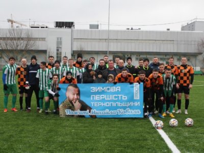 Сьогодні, 2 березня, у Тернополі на новому стадіоні зі штучним покриттям взяла старт чергова зимова першість Тернопільщини з футболу. Цьогоріч вона носить ім’я президента ФК «Поділля», загиблого на війні майора Збройних сил України, командира 55 батальйону 63 ОМБр Михайла Олеговича Коваля.