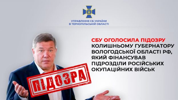 Слідчі Тернопільського управління СБУ зібрали доказову базу щодо ексгубернатора Вологодської області рф Олега Кувшиннікова, який фінансував підрозділи російських окупаційних військ та забезпечував окупантів безпілотниками і засобами зв’язку.