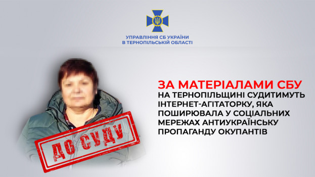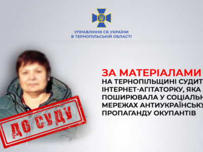 За матеріалами СБУ на Тернопільщині судитимуть інтернет-агітаторку, яка поширювала у соціальних мережах антиукраїнську пропаганду окупантів та виправдовувала збройну агресію рф. Слідчі спецслужби скерували до суду обвинувальний акт із доказами вини уродженки м. Попасна.