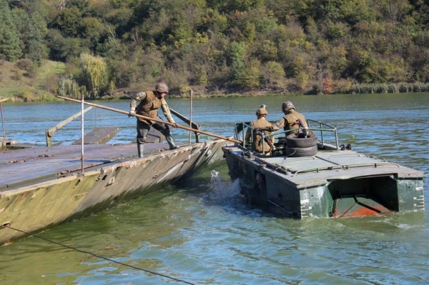 “Переправили понтонною переправою з одного берега на інший два автомобіля марки ЗІЛ-131 для подальшого їхнього пересування по сухій місцевості”, — розповів старший солдат Ілля.
