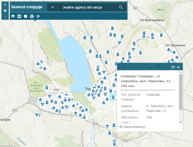 У Тернополі відбулася презентація інтерактивної карти захисних споруд, які, у разі виникнення надзвичайної ситуації, можуть бути використані як укриття для збереження життя та здоров’я тернополян. На карті позначили 219 укриттів різних типів, які можуть вмістити понад 83 тисячі людей.