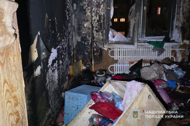 На восьмому поверсі горіла квартира. Вхідні двері були закриті зсередини, а тому пожежникам довелося добиратися до помешкання через вікна.