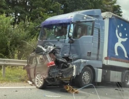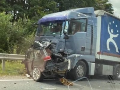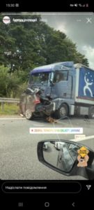 На дорозі не розминулася чорна іномарка та вантажівка. Через сильний удар, від легкового авто майже нічого не залишилося. В результаті зіткнення машину викинуло на обочину. Вантажівка зазнала набагато менше пошкоджень. Про інцидент стало відомо з мережі Інстаграм.