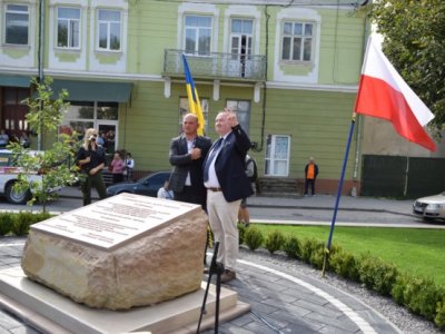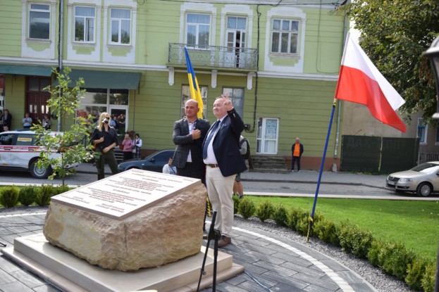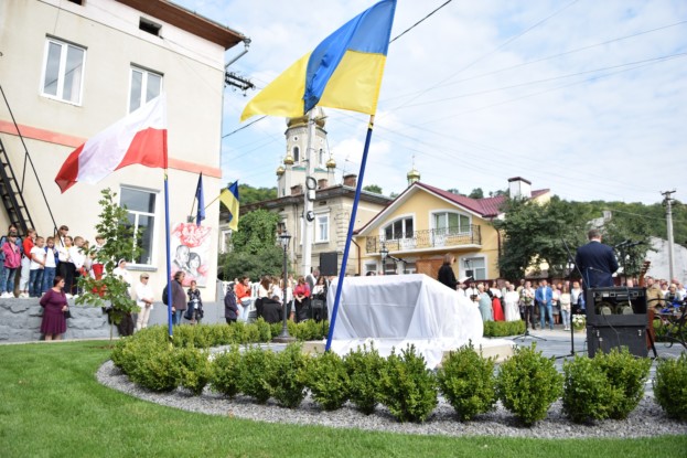 Напередодні у сквері висадили два дуби, навколо вимостили бруківку, встановили лавки та ліхтарі вуличного освітлення, а головне – гранітну плиту на честь президента Польщі Леха Качинського та його дружини Марії. Всі роботи профінансувала громадська спілка «Міжнародне товариство польських підприємців в Україні».