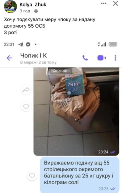 – …Ігор Чопик спромігся «пожертвувати» для вояків ЗСУ аж … 25 кільо цукру і єден кільо солі, – йдеться серед іншого в дописі в групи «Альтернативна громада міста Борщів».