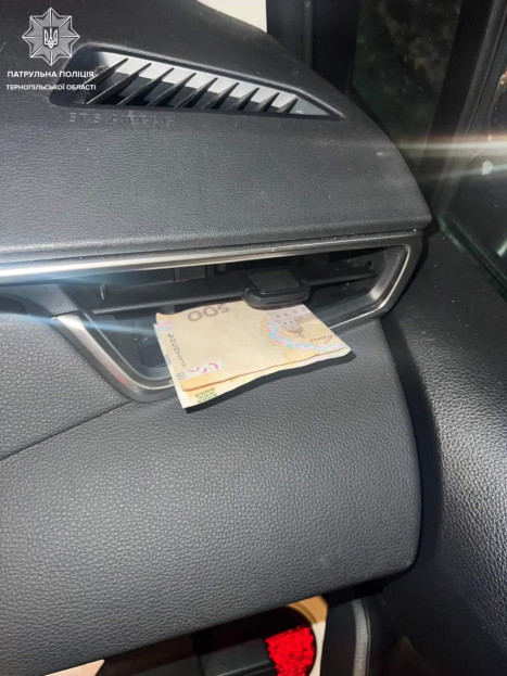 За не притягнення до відповідальності за порушення ПДР, чоловік поклав у салон службового автомобіля кошти у розмірі 500 гривень. Інспектори попередили чоловіка про кримінальну відповідальність за пропозицію неправомірної вигоди, але громадянина це не зупинило.