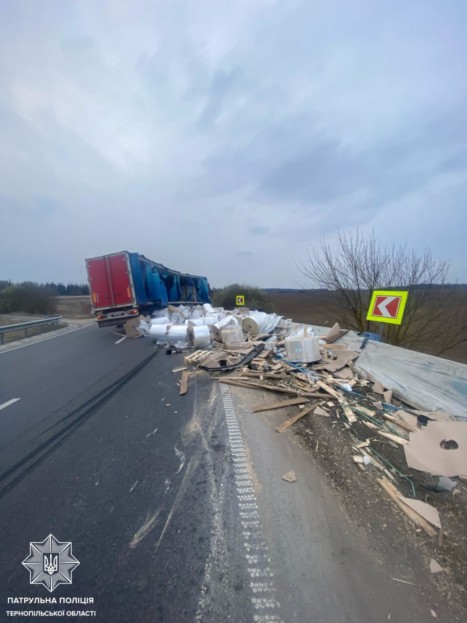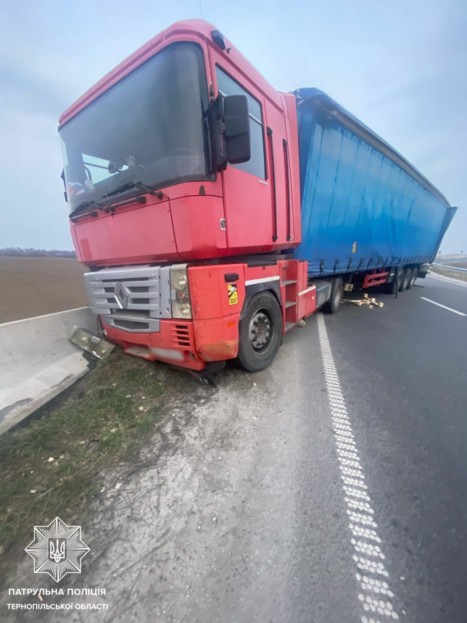 На Тернопільщині водій фури заїхав у відбійник і “загубив” вантаж