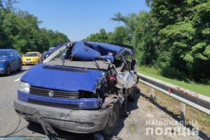 На місце пригоди виїжджала слідчо-оперативна група. За попередньою інформацією, водій автомобіля Volkswagen LT заснув за кермом, виїхав на смугу зустрічного руху і боковою частиною автівки зачепив вантажівку DAF.