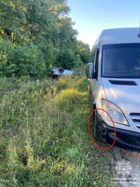 Як повідомляє патрульна поліція Тернопільської області, водій автомобіля Mercedes-Benz Sprinter повідомив, що заснув за кермом, внаслідок чого зіткнувся з автомобілем Ford, і легковик перекинувся.