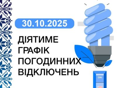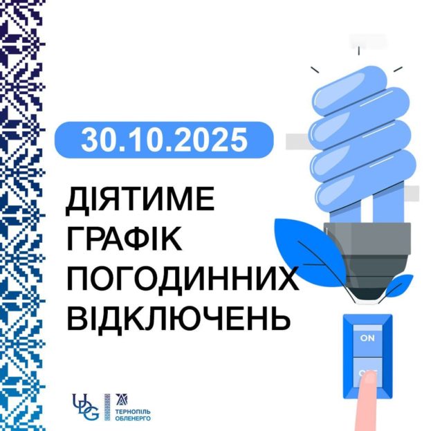Відповідно до команди НЕК “Укренерго” 30 жовтня з 08:00 по 19:00 на Тернопільщині застосовуватимуться графіки погодинних відключень.