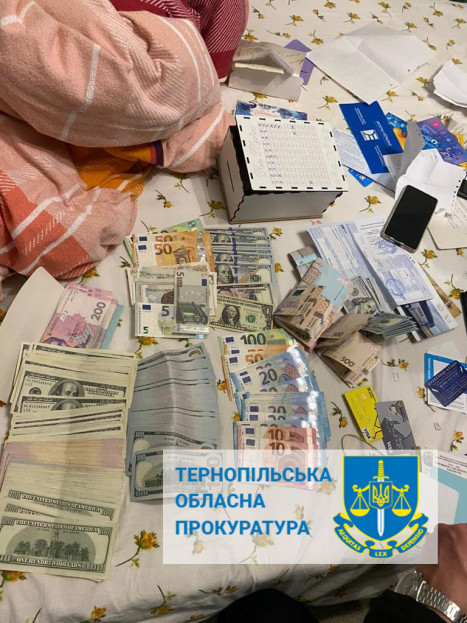 Під час санкціонованих обшуків на території Тернопільської, Львівської та Київської областей у фігурантів справи вилучено 3 автомобілі, понад 100 тис доларів США, мобільні телефони, чорнові записи й документи, комп’ютерну техніку.