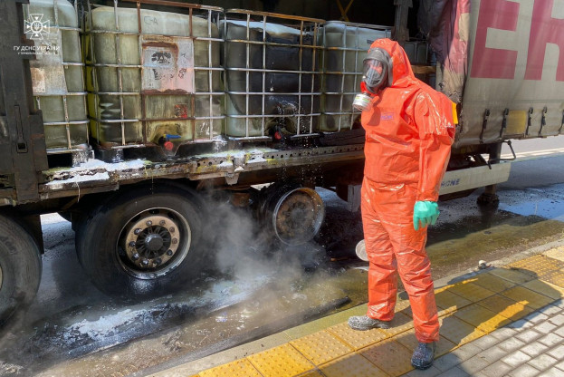 Відділенням радіаційної та хімічної розвідки проведене відкачування кислоти з пошкодженої місткості та подальша її нейтралізація.