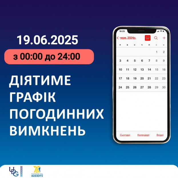 В середу, 19 червня, з 00:00 до 24:00 год, на Тернопільщині прогнозується застосування погодинних вимкнень.