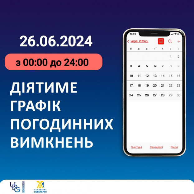 У середу, 26 червня, з 00:00 до 24:00 год, на Тернопільщині прогнозується застосування погодинних вимкнень.