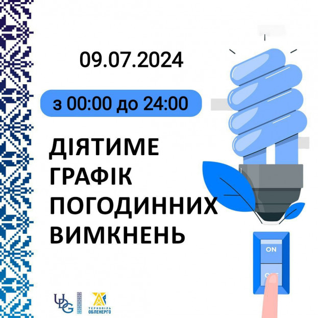 У вівторок, 9 липня, з 00:00 до 24:00 год, на Тернопільщині прогнозується застосування погодинних вимкнень.
