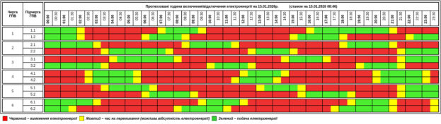 Згідно вказівки НЕК “Укренерго” 15.01.2026 року збільшено кількість черг, які підлягають відключенню.