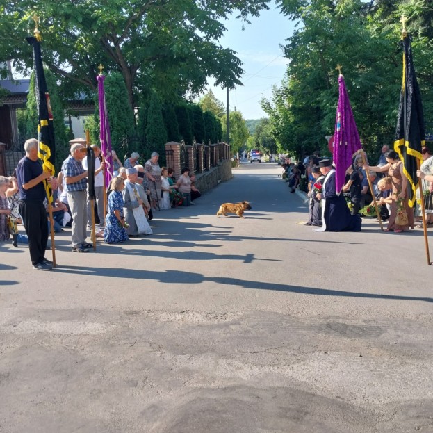 Навколішки, з національною символікою в руках у Борщівській громаді зустріли тіло полеглого 36-річного солдата Віталія Мартинюка, уродженця села Залісся Іване-Пустенської громади, встеливши квітами його останню дорогу додому.