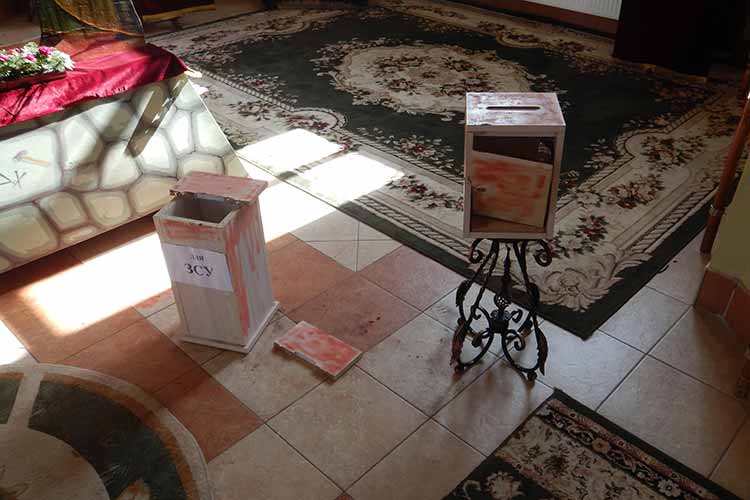 Зі слів начальника управління карного розшуку ГУНП в Тернопільській області Андрія Кісіля, наприкінці березня надійшла перша заява від настоятеля храму, що в селі Озерна Тернопільського району, про те, що невідома особа вночі, відваживши вікно, проникла до церкви й викрала гроші зі скриньки, куди парафіяни збирали пожертви для потреб ЗСУ. Зникло понад 6 000 гривень.