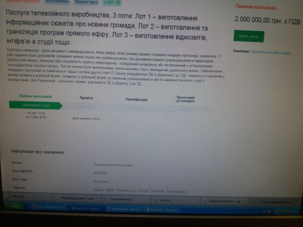 Тернопільська міська рада через систему «Прозорро» планує придбавати телевізійні послуги пов’язані з власним піаром. Ціна питання – 2 мільйони гривень.