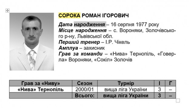 Мітки: "Нива", Роман Ігорович Сорока, ФК Тернопіль, футбол