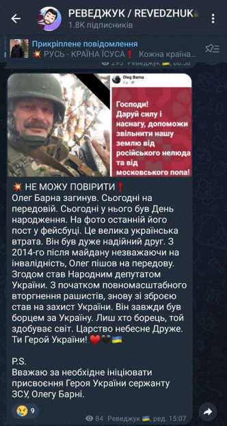 Попередньо Барна загинув вчора, 17 квітня. Сьогодні, 18 квітня, екснардепу мало виповнитися 56 років.