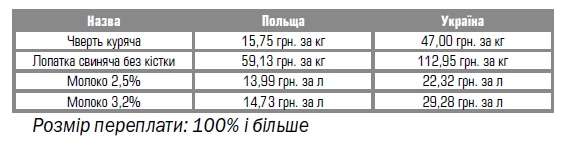 Більш високі ціни на продукти в Україні можна пояснити вищою собівартістю вітчизняного тваринництва, крім птахівництва, та труднощами при перетині кордону транспорту з продуктами, які швидко псуються.