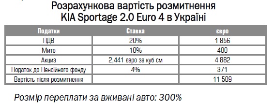 Розрахункова вартість розмитнення KIA Sportage 2.0 Euro 4 в Україні
