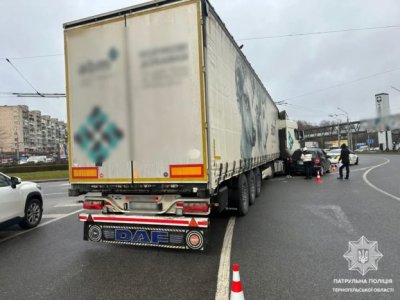 На Збаразькому кільці сталася ДТП без травмованиних за участі вантажного автомобіля DAF та легковика Mercedes. Рух транспорту ускладнений.