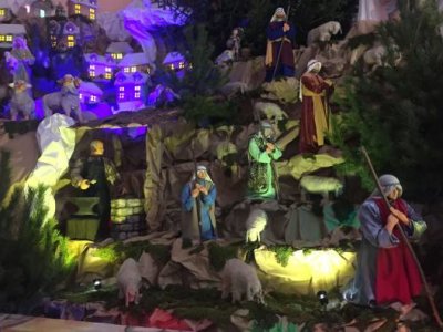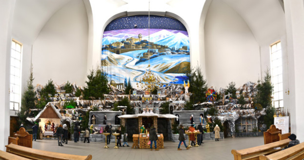 Цього року офіційне відкриття відбулося у ніч із 6 на 7 січня. Встановлена вона у церкві святого апостола Петра, яка знаходиться на вулиці Володимира Великого. Її висота становить двадцять метрів, ширина – понад п’ятдесят метрів. Візуалізований вертеп простягнувся на всю ширину храму перед вівтарем. Композиція показує відвідувачам сценки із життя Ісуса Христа. Тут є навіть селище на пагорбах із будиночками, храмом, людьми та різними тваринами і птахами. Не оминули увагою і царів, які поспішають до Ісуса та Ноя на ковчезі. Оскільки у церкві служать представники чину францисканців, у композиції представлено і небіблійного персонажа – святого Франциска, який б’є у дзвін.