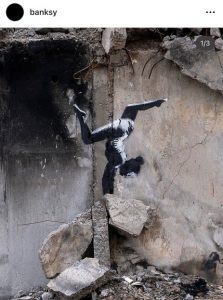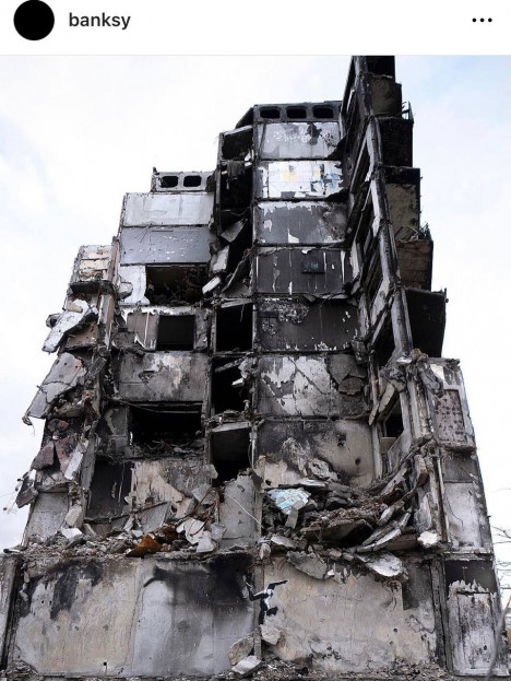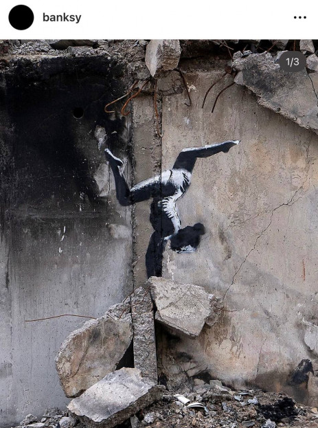 Всесвітньо відомий і найтаємничіший художник сьогодення під псевдо Banksy оприлюднив на своїй сторінці в Інстаграм черговий створений ним мистецький шедевр на стіні зруйнованого будинку в Бордянці. Таким чином стало відомо, що художник потай відвідав Київщину і залишив українцям частинку своєї душі.