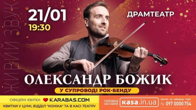 21 січня о 19:30 у ДрамТеатрі ім.Т.Шевченка відбудуться концерти скрипаля-віртуоза Олександра Божика.
