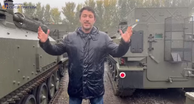 – Скоро дощі і сніги будуть і в Україні. Це означає, що нашим військовим буде вкрай потрібна саме гусенична техніка. Все, що є броньоване і на гусеницях має бути в нас. Ми рисачимо, ми шукаємо, і ми знаходимо. Це – британські “Спартани”, вони – в дуже хорошій кондиції, і їх є дуже й дуже багато. Ви хотіли великий мегазбір? Я вас прошу: а давайте для нашої рідненької армії купимо дуже багато броньованої техніки! Давайте будемо брати її десятками, пачками і зробимо з того всього великий броньований кулак. Треба брати. Ми збираємо не на 10, не на 20, а на цілих 50 британських бронетранспортерів “Спартан”, – каже Сергій Притула у зверненні, записаному між вишикуваних “Спартанів”.