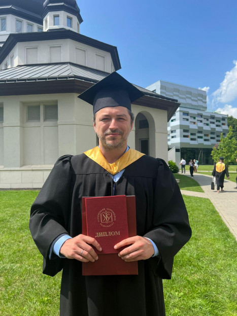 Дякую науковій керівниці Мирославі Чех за терпіння та за те, як направляла мою «публіцистику» в академічне русло. Дякую одногрупникам за підтримку і мотивацію впродовж цих двох років. Нехай усе, що ми здобули в стінах Українського католицького університету піде на користь Україні!, – зазначив після отримання диплому Сергій Притула.
