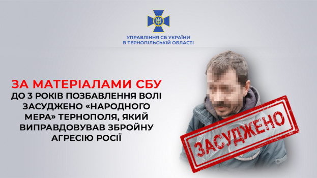 Також СБУ встановила, що в минулому засуджений проголошував себе «народним мером Тернополя» під час участі у заходах сумнозвісного лідера фейкового «народовладдя» Анатолія Балахніна.