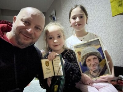 Наймолодша донька Олексія народилася вже після того, як батько загинув на фронті. Тепер вона, разом зі своєю сестрою, тримає в руках батькову нагороду — символ його мужності та відданості.