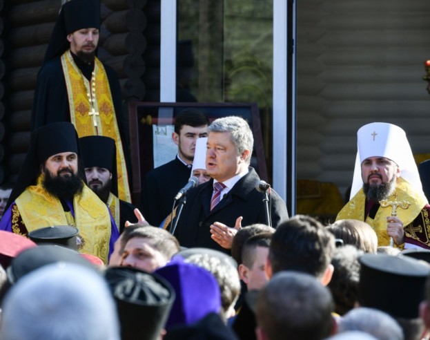 «Так, Москва чекала, щоб у нас почала литися кров, щоби почалися штурми храмів, захоплення монастирів… Не дочекалися. Бо наша церква іде з вірою і любов’ю», – підкреслив Петро Порошенко, зауваживши, що українці не розуміють, як у країні може існувати церква, підпорядкована іншій державі і молиться за її військо.