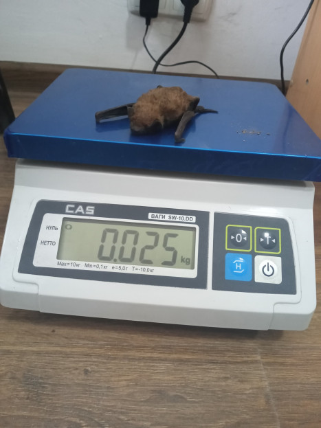 ⠀5. Зважте кажана. Визначте вид. Якщо його вага нижче норми то його слід підгодовувати протягом 7-10днів. Для рудої вечірниці це 30 грамів, для пізнього кажана – 27 грамів, для нетопира середземноморського – 8 грамів, двоколірного лилика – 14 грамів, вуханя – 12 грамів.