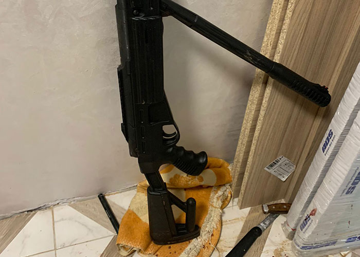 З місця події поліцейські вилучили предмет, схожий на гвинтівку, 2 ножі, невідомі рідкі речовини у каністрах та пробірках.