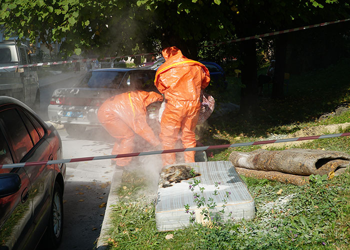 Співробітники роти поліції особливого призначення за згоди господині помешкання деблокували двері до кімнати, де забарикадувався чоловік. У приміщенні виникло задимлення. За попередніми даними, – через кислоту, яку правопорушник розлив навмисно в квартирі.
