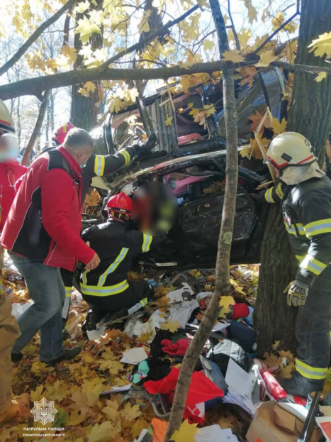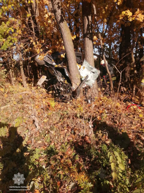 За попередньою інформацією, водій автомобіля Audi-А3, рухаючись в напрямку Тернополя, не впорався з керуванням і автівка злетіла у кювет, перекинулася та врізалася в дерева.