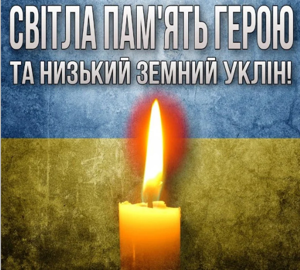 В цю гірку мить поділяємо горе рідних та близьких загиблого Героя і схиляємо голови в глибокій скорботі.