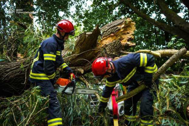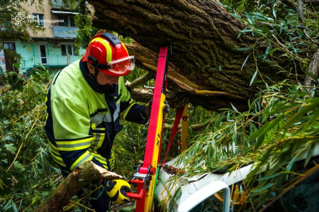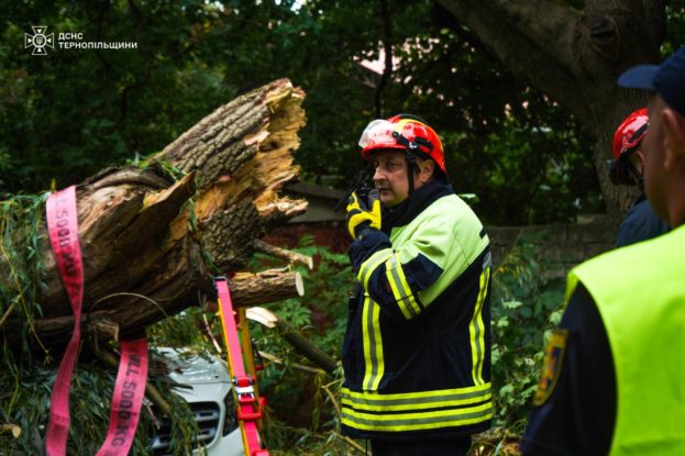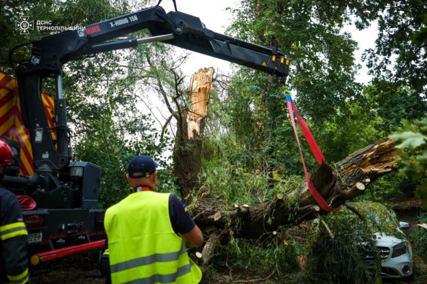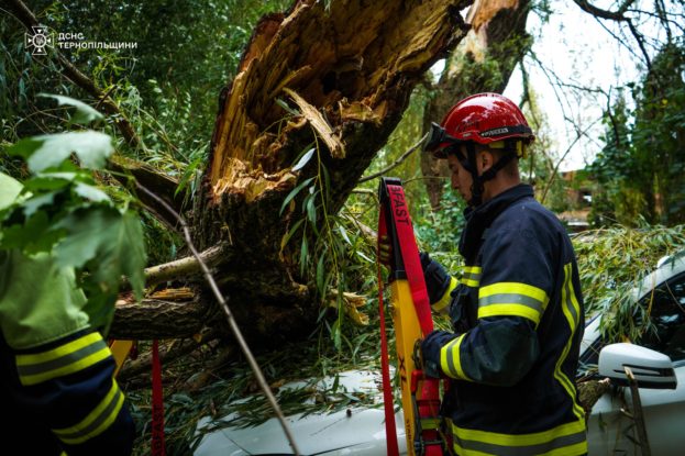 Наші хлопці оперативно прибули на місце і за допомогою спецобладнання обережно розрізали стовбур та гілля, звільнивши машину з-під завалу. Територію повністю розчистили та убезпечили, – йдеться в повідомленні Головному управлінні ДСНС України у Тернопільській області.