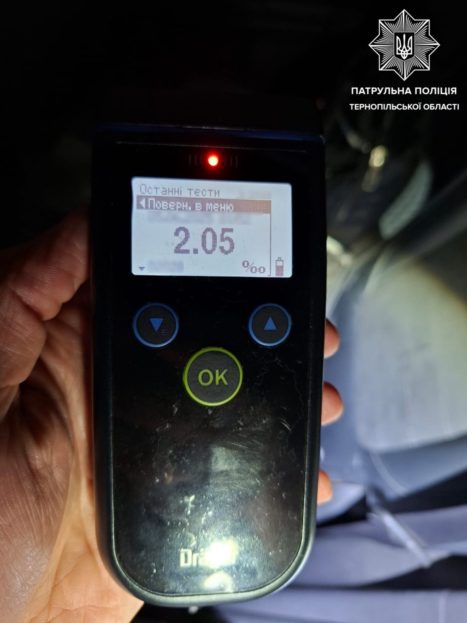 Спілкуючись з водійкою інспектори виявили в неї ознаки алкогольного сп’яніння. Жінка погодила пройти відповідний огляд на місці за допомогою приладу Драгер. Результат — 2,05 проміле. На 37-річну громадянку поліцейські склали адміністративний протокол за ч.1 ст.130 (Керування транспортним засобом у стані сп’яніння) КУпАП та відсторонили її від керування, – йдеться в повідомленні тернопільських патрульних.