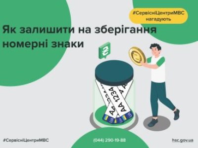 • повідомити адміністратора про бажання залишити номерний знак на платному зберігані в сервісному центрі МВС;