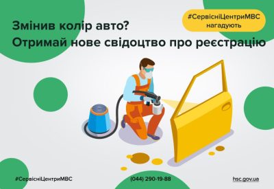 Якщо було змінено колір автівки, мопеда, чи вантажівки, такий транспортний засіб необхідно перереєструвати. Для цього автовласник звертається до будь-якого зручного сервісного центру МВС незалежно від місця проживання або реєстрації. Перед візитом потрібно підготувати відповідний пакет документів: