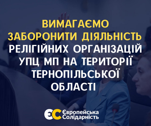 Сьогодні, коли питання московської церкви стало як ніколи гостро, коли московської літаки бомбардують українську землю, коли московські ракети знищують українську інфраструктуру, а московська церква називається «українською». Це недопустимо! Саме тому, фракція Європейська Солідарність у Тернопільська обласна рада зареєструвала проєкт рішення щодо зміцнення національної безпеки у сфері свободи совісті та діяльності релігійних організацій, де ми вимагаємо: