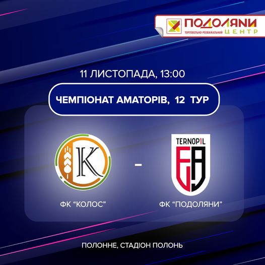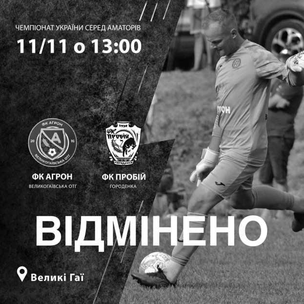 Сьогодні, 11 листопада, матчі 12-го туру чемпіонату України серед аматорів мали провести два колективи з Тернопільщини – великогаївський «Агрон» та тернопільські «Подоляни». Однак вони не відбулися.