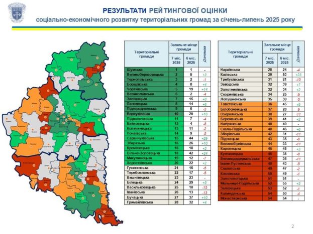 Сформували рейтинг спроможності громад Тернопільщини за січень–липень 2025 року. Його представив начальник Тернопільської обласної військової адміністрації В’ячеслав Негода.