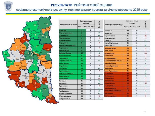 Ми також писали, що Влада Тернопільщини назвала громади з найнижчим рейтингом та невикористаним потенціалом