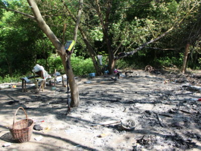 Жінка заявила, що на неї та інших поселенців наметового містечка напала група невідомих приблизно п’ятнадцять чоловік. Молоді люди стріляли, кричали та намагалися їх побити. Врятувалися постраждалі від нападників втечею.
